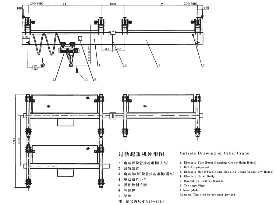 3、 該產(chǎn)品屬于組合設備,由電動葫蘆小車、電動雙梁懸掛起重機(主車)、(手)電動單(雙)梁懸掛起重機(副車)和過軌裝置組成。