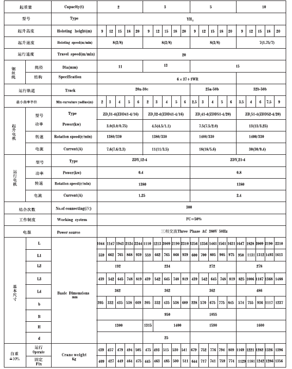 1、 YH系列冶金電動葫蘆主要用于吊運熔融金屬的冶金起重機設備,其起重量ㄑ20m,工作環境溫度為-10℃-60℃,在40℃的環境溫度下,相對濕度不大于50%。