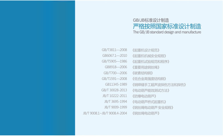 4、 冶金電動葫蘆的設計、制造滿足國家質檢總局所發的質檢辦特函【2007】375號文件。