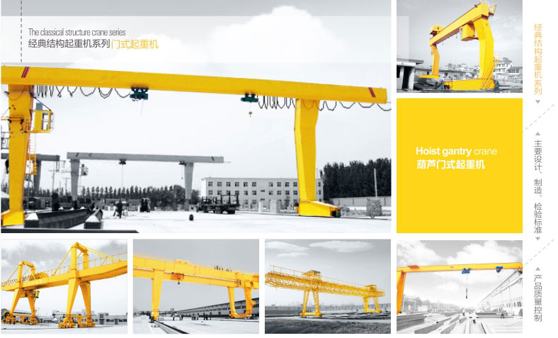 1、L型電動葫蘆門式起重機與CD1、MD1等型號的電動葫蘆配套使用,是一種有軌運行的中小型起重機。