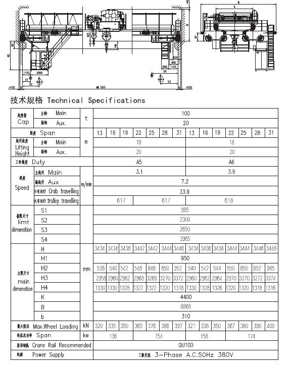 1、 QD型吊鉤橋式起重機主要應用于各種室內車間。根據利用等級和載荷狀態的不同,分為A5、A6兩種工作級別。