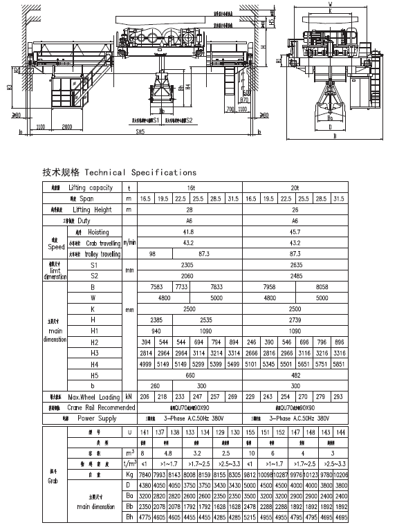 7、 抓斗只適用于自然堆積狀態下的散粒物料,當抓取水下物料或特殊物料時,須在訂貨時特別提出。